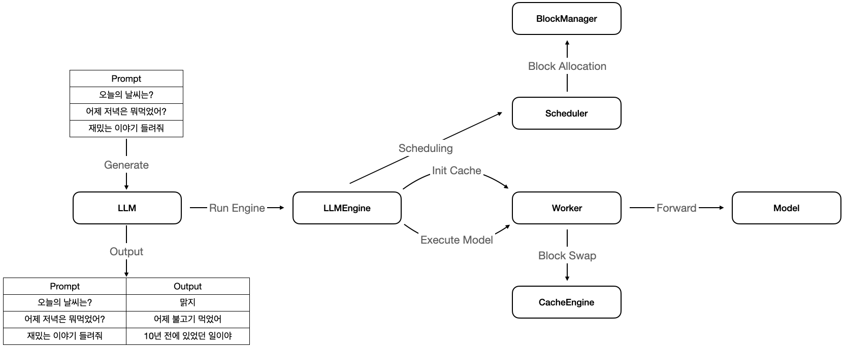 - vLLM은 PagedAttention 기반의 LLM 서빙엔진이고,