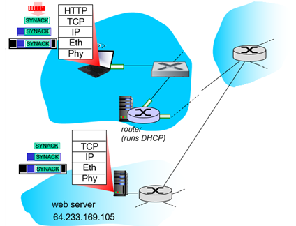 ⤷이 DHCP 서버는 (1)클라이언트의 IP주소를 가지고 있다. 그리고 (2)클라이언트와 연결된 첫 번째 라우터의 주소, 그리고 (3)DNS의 이름과 IP주소를 포함한 DHCP