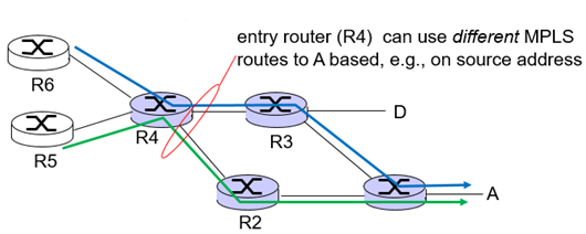 ⤷MPLS의 또다른 장점은 유연하다는 것이다. MPLS 포워딩의 결정은 IP 포워딩의 결정과 다르다.