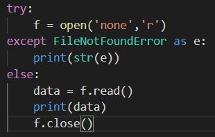 만약, 파일 open이 성공했으면 read하고 print하고 close가 실행되는 것이다.