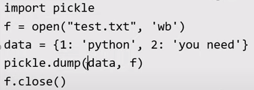 - pickle() : 파일 형태로 저장가능. 딕셔너리 같은 거는 파이썬에만 있는 데이터이다. 그걸 pickle을 통해서 dump라는