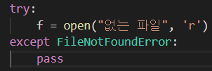 파일을 open했는데 파일이 없으면 FileNotFoundError를 출력.