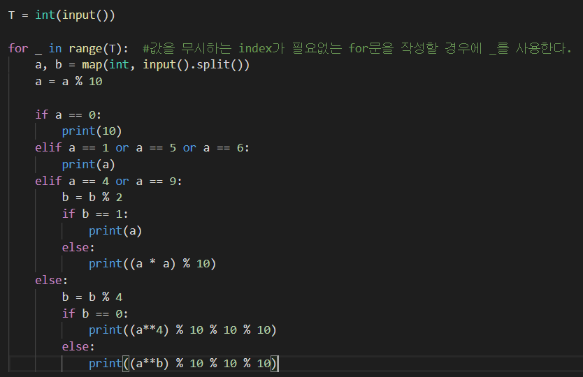 다음 줄부터 테스트할 정수 a,b를 한 번의 엔터로 입력한다.