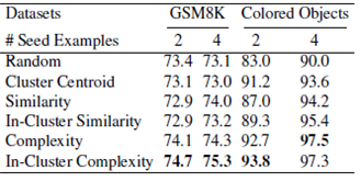 우리는 추론을 위해 증강 세트에서 다양하고 유익한 시연을 선택하기 위한 클러스터 내 복잡성 기반 체계를 제안합니다.