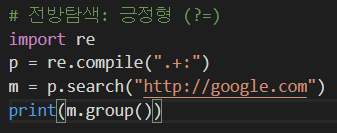 전방탐색 전방탐색은 긍정형과 부정형이 있다. 전방탐색 - 긍정형 이런 예제가 있다고 했을 때 http: 까지만 매칭을 하고 싶다. 그러면 정규 표현식에서 . 문자열이 반복되다가 : 을 만났을 때 여기까지가 매칭이 된다. 그렇다면 이번에는 http만 출력을 하고 싶어. 그러면 : 은 검색 조건에는 넣되, 결과에는 빠져야 한다. 이럴 때 긍정형 전방탐색을 사용한다. 기호는 (?=) 을 사용한다. = 뒤에 원하는 문자열을 넣어주면, 이렇게 출력 결과가 나오게 된다. 즉, 검색 조건에는 포함되나 결과에는 포함되지 않는 것이다. 전방탐색 - 부정형 부정형의 기호는 (?!) 이다. 예를 들어 ".*[.](?!bat$).*$" 이런 식이 있다고 했을 때 이거는 어떤 문자열이 쭉 있고 . 이 있고 어떤 확장자가 있는데..